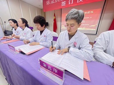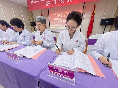 一笔一划,签下的是姓名,许下的是对生命的承诺,扛起的是沉甸甸的责任。这标志着依法执业、规范行医已成为全院上下的共同意志与公开誓言。