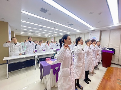 “我庄严宣誓:我志愿献身医疗卫生事业,恪守医务人员职业道德……我将恪守此誓,言出必行,知行合一,为保障母婴安康、促进医院高质量发展贡献全部力量!”